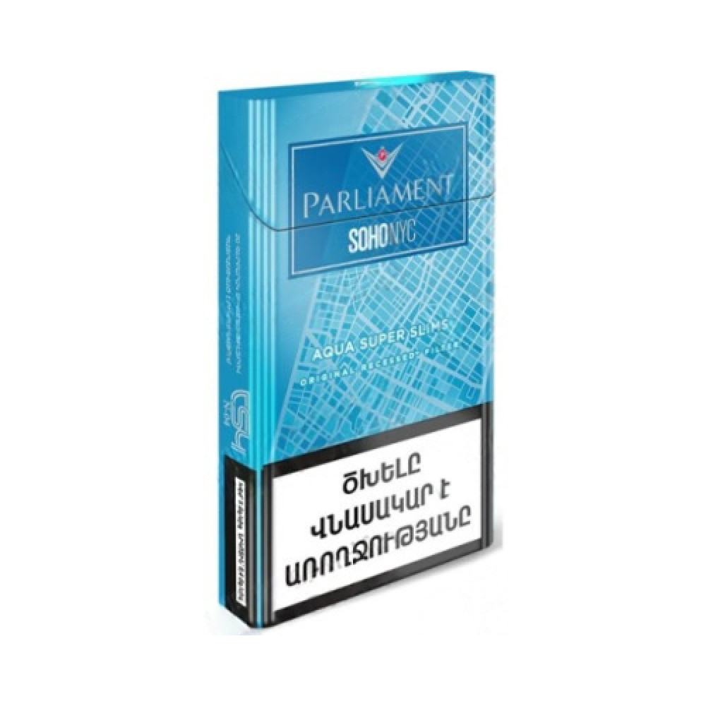 Произведенные мастерами Philip Morris International в Польше с учетом мировых стандартов, Parliament Soho Nyc Aqua Super Slims обеспечивают превосходный вкус и сбалансированное содержание смолы (5 мг) и никотина (0,4 мг).